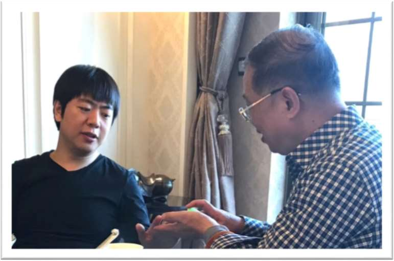 著名钢琴家郎朗在接受黄院长的手部治疗,使